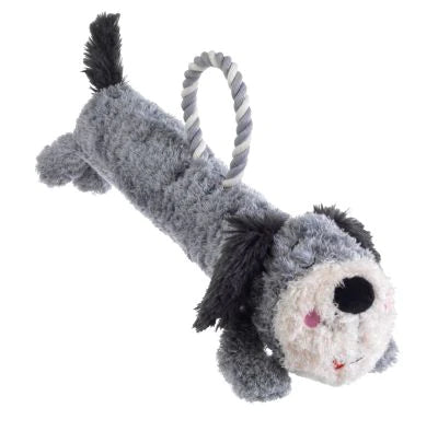 House of Paws Loofa & Rope Dog. A plush textured dog toy that will be perfect for fetch and play time. Contains a squeaker for extra fun.