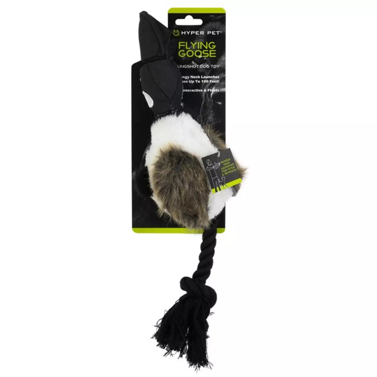 Thumb released slingshot dog toy. Made with durable ballistic material. Bungy neck can launch toy up to 100 feet!