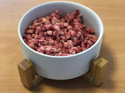 We only use 100% Natural ingredients in our dog food with no artificial colours, preservatives or additives. None of our natural dog food products contain fillers, grains or cereals. As dog lovers and raw feeders ourselves we have seen first-hand the incredible benefits feeding an unprocessed raw diet brings to our much-loved pets.